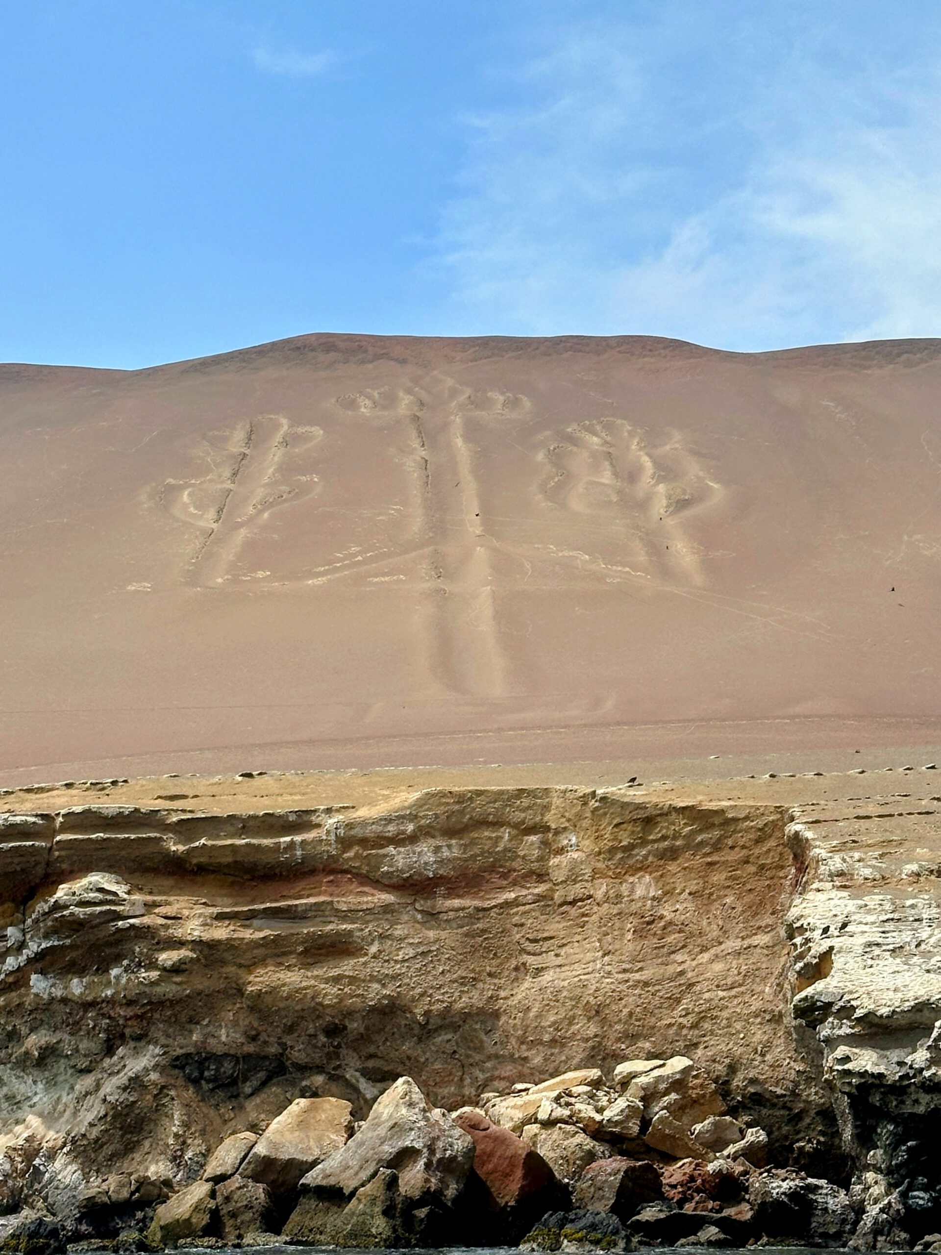 Durante el recorrido también podrás apreciar el famoso geoglifo del Candelabro, una misteriosa figura grabada en la arena que solo puede verse desde el mar.